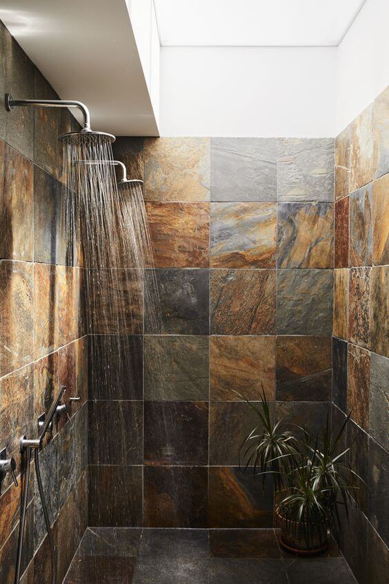 This idea of bathroom shower looks modern with glass door and double showerhead—wall mount and hand held. Offering a lighter water pressure and mirroring the effect of a downpour, rain. So, let's start this article with a few beautiful modern shower design ideas. The variety of tile that make up this shower is impressive and interesting. 18 incredible bathroom shower ideas to inspire your renovation.
